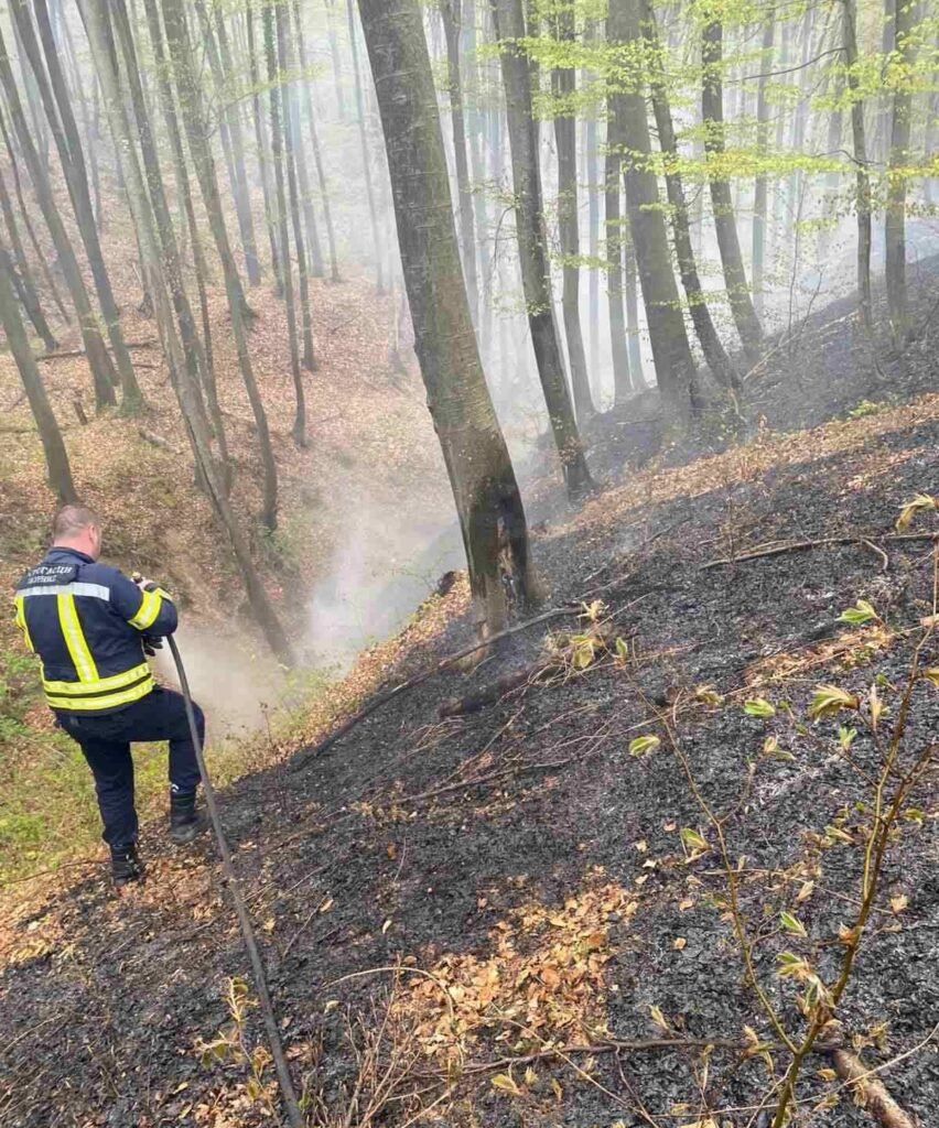 Vatrena stihija zahvatila je nisko rastinje i šiblje, ali je zahvaljujući hitnoj i pravovremenoj reakciji ekipa na terenu, požar stavljen pod kontrolu prije nego što je uspio da se proširi.