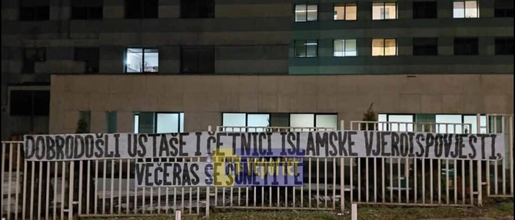 TUZLA – Policija je privela dva lica iz Tuzle čiji su inicijali M. Č. /23/ i A. H. /24/ zbog sumnje da su na ogradi Univerzitetskog kliničkog centra postavili transparent sa natpisom koji izaziva vjersku mržnju.
