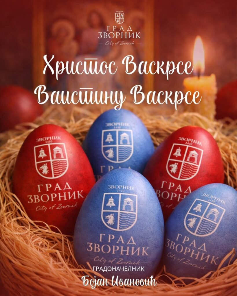 ZVORNIK – Gradonačelnik Zvornika, Bojan Ivanović, uputio je srdačnu čestitku svim sugrađanima i vjernicima koji proslavljaju najveći hrišćanski praznik – Vaskrs.