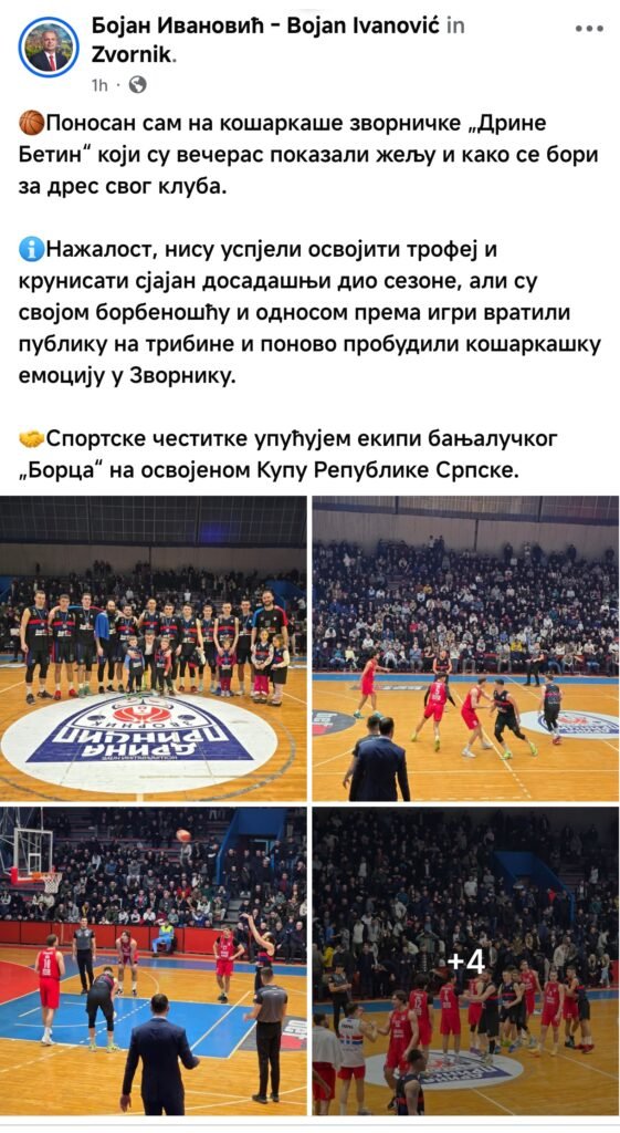 „Ponosan sam na košarkaše zvorničke ‘Drine Betin’ koji su večeras pokazali želju i kako se bori za dres svog kluba. Nažalost, nisu uspjeli osvojiti trofej i krunisati sjajan dosadašnji dio sezone, ali su svojom borbenošću i odnosom prema igri vratili publiku na tribine i ponovo probudili košarkašku emociju u Zvorniku. Sportske čestitke upućujem ekipi banjalučkog ‘Borca’ na osvojenom Kupu Republike Srpske.“