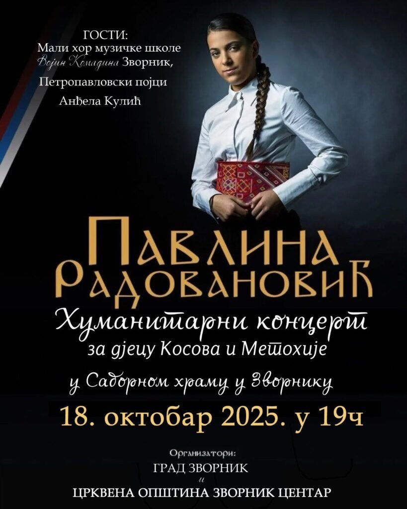 Sa radošću i ponosom obavještavamo da će grad Zvornik i njegovi vjernici imati čast da 18. oktobra dočekaju mladu umjetnicu Pavlinu Radovanović u 19:00 časova u Sabornom hramu u Zvorniku.
