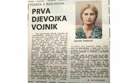 ”Već polovinom idućeg mjeseca sivomaslinastu uniformu obućiće i jedna djevojka iz našeg kraja. Radi se o Jasminki Puškarević iz Kozluka koja će kao prva u našoj opštini ići na odsluženje vojnog roka. Regrutovana je u školu retervnih oficira u AVNO jedinicu. Školovanje će trajati šest mjeseci. Ona s nestrpljenjem očekuje poziv za Armiju.