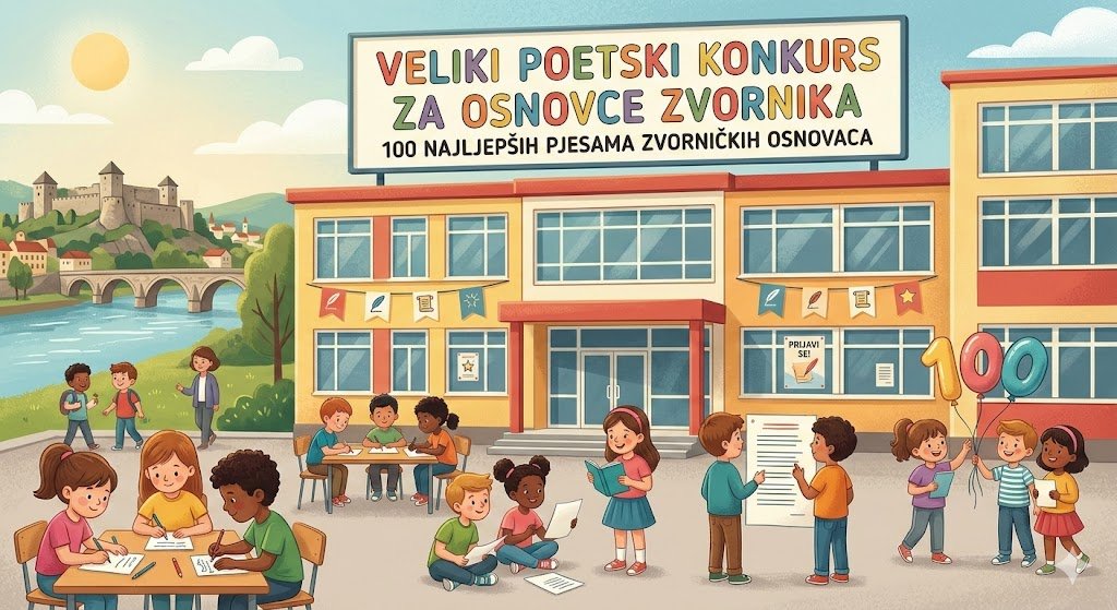 Da li ste ikada sanjali da vaša pjesma postane dio prave pravcate knjige? Sada je prilika da vaša mašta dobije krila! Portal Zvorničke novine i izdavačka kuća AS oglasi, u saradnji sa OŠ „Sveti Sava“, raspisuju konkurs za izbor 100 najljepših pjesama učenika osnovnih škola sa teritorije naše opštine.